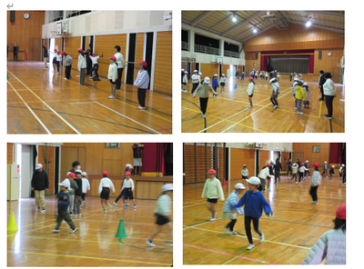 寒い朝、楽しみながら体を動かしました!(体育朝会)