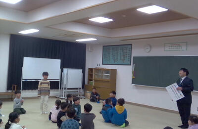 先生からは、自分やみんなの学校生活をよりよくするために、「気持ちの良い挨拶」について、子ども達にお話しがありました。