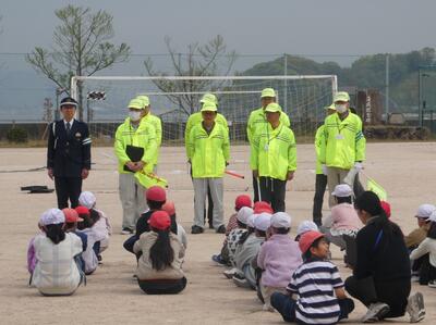 切串交通安全協会の方々と江田島警察署の方々に、ご指導をしていただき、学年ごとに活動しました!